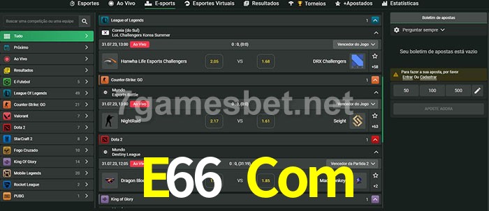 O E66 Com oferece uma grande seleção de opções de apostas em e-sports com probabilidades competitivas
